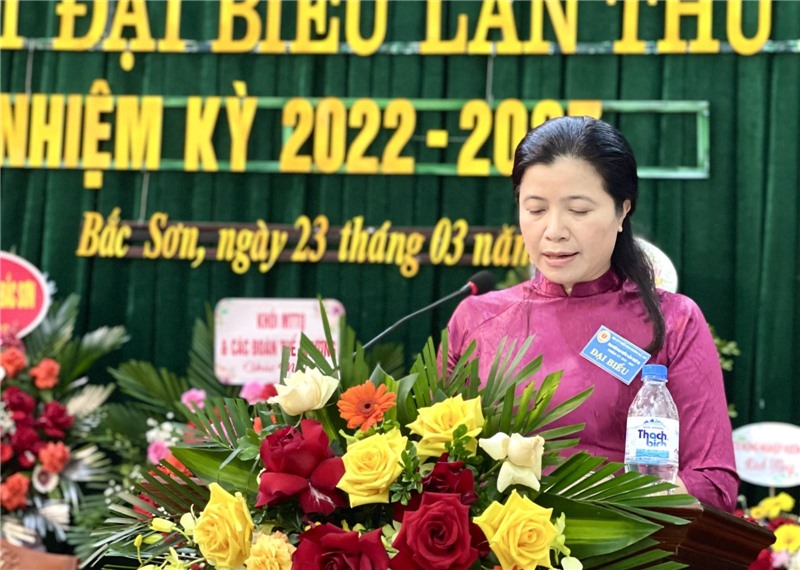 Lãnh đạo phường Bắc Sơn phát biểu, tặng hoa chúc mừng Đại hội.