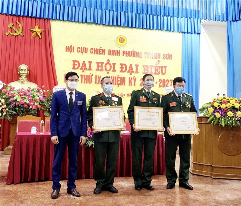 Nhân dịp này, 3 tập thể và 6 cá nhân có thành tích xuất sắc trong phong trào công tác Hội nhiệm kỳ 2017-2022 đã được phường Thanh Sơn biểu dương, khen thưởng.