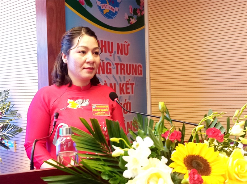 Đồng chí Phạm Thị Hải, Chủ tịch Hội LHPN thành phố phát biểu tại Đại hội.