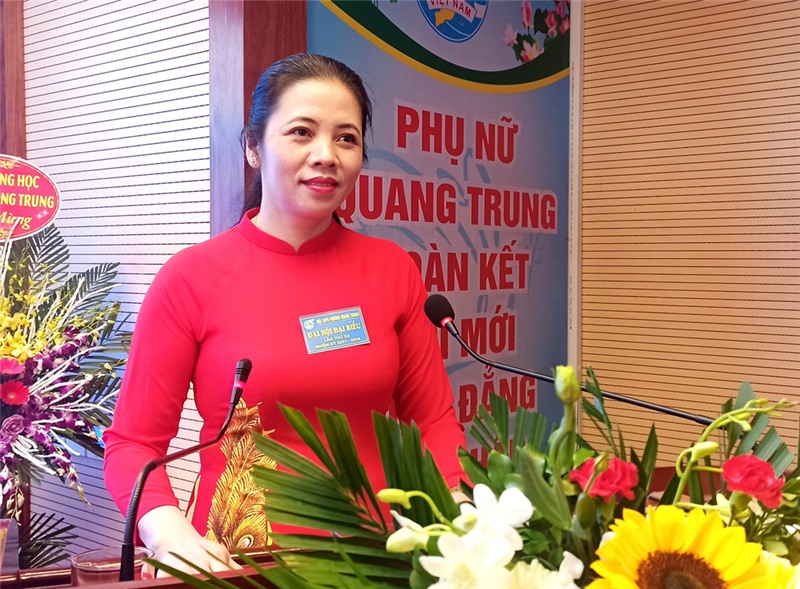 Chủ tịch Hội LHPN phường Quang Trung nhiệm kỳ 2016-2021 báo cáo tại Đại hội.