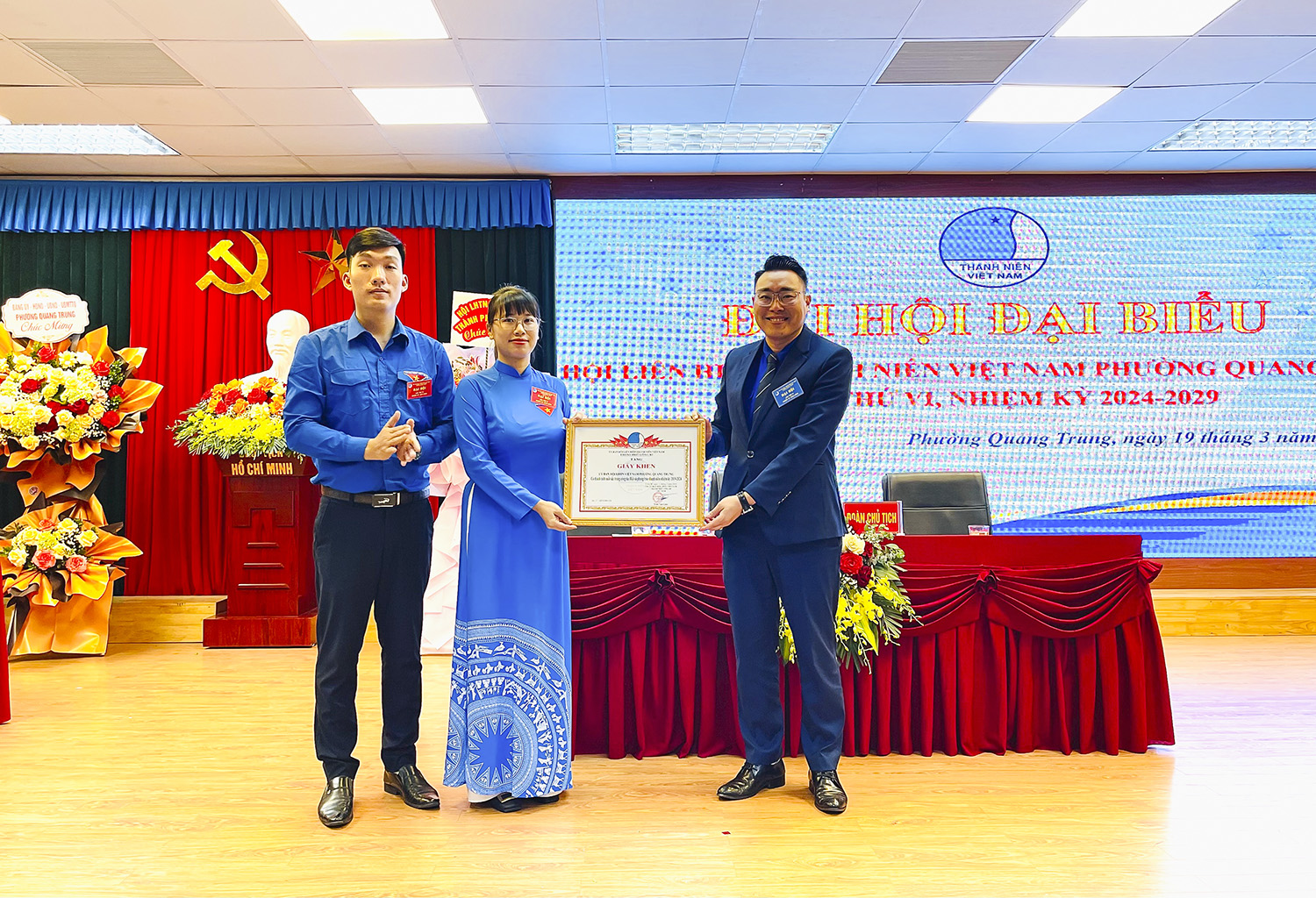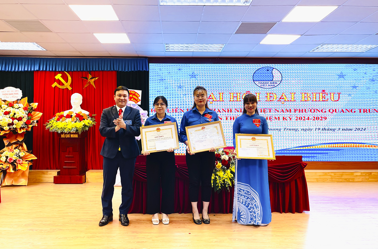 Nhân dịp này, UBND phường Quang Trung đã khen thưởng các tập thể và cá nhân đã có thành tích xuất sắc trong hoạt động công tác Hội và phong trào thanh niên nhiệm kỳ 2019-2024.