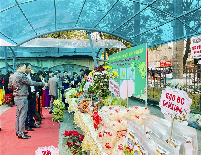 Đại biểu tham quan sản phẩm đặc trưng của HND phường Trưng Vương.
