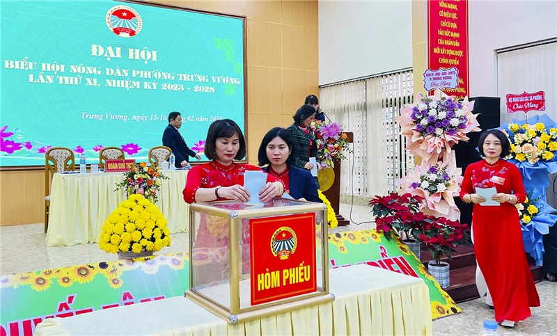 Đại hội cũng bỏ phiếu bầu ra BCH Hội Nông dân phường Trưng Vương nhiệm kỳ 2023-2028 gồm 13 đồng chí, bầu đoàn đại biểu dự Đại hội Hội Nông dân thành phố. Đồng chí Đoàn Thị Băng tiếp tục được tín nhiệm bầu làm Chủ tịch Hội Nông dân phường khoá XI, nhiệm kỳ 2022-2028.