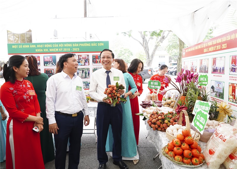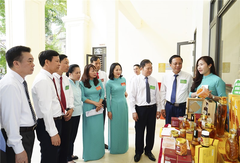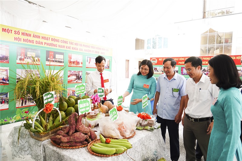 Các đại biểu thăm quan gian hàng trưng bày sản phẩm nông sản của các xã phường tại Đại hội.