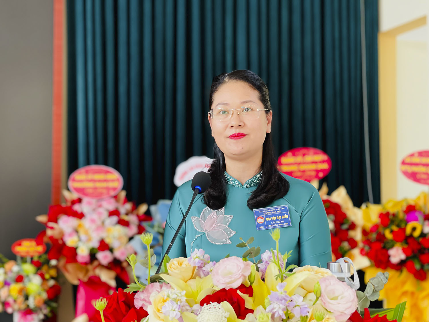 Đồng chí Vũ Thị Thuyết, Chủ tịch UB MTTQ phường phát biểu khai mạc Đại hội.