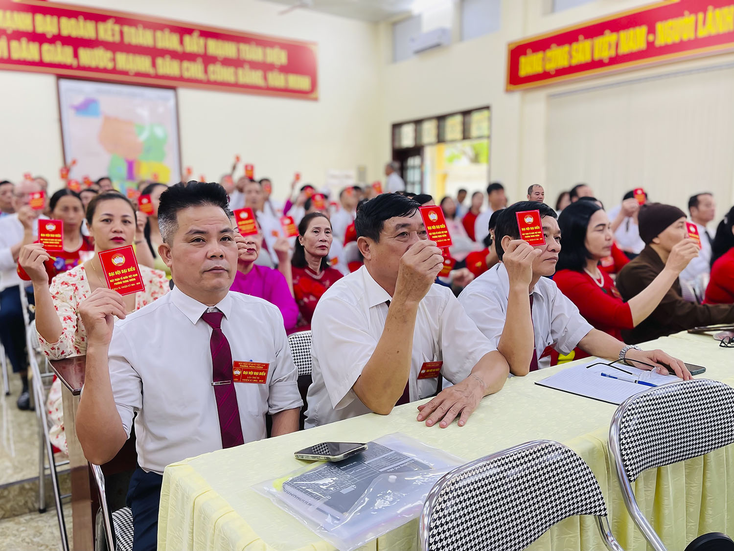 Đại biểu biểu quyết hiệp thương giới thiệu Uỷ ban MTTQ phường Trưng Vương khóa XI nhiệm kỳ 2024-2029.