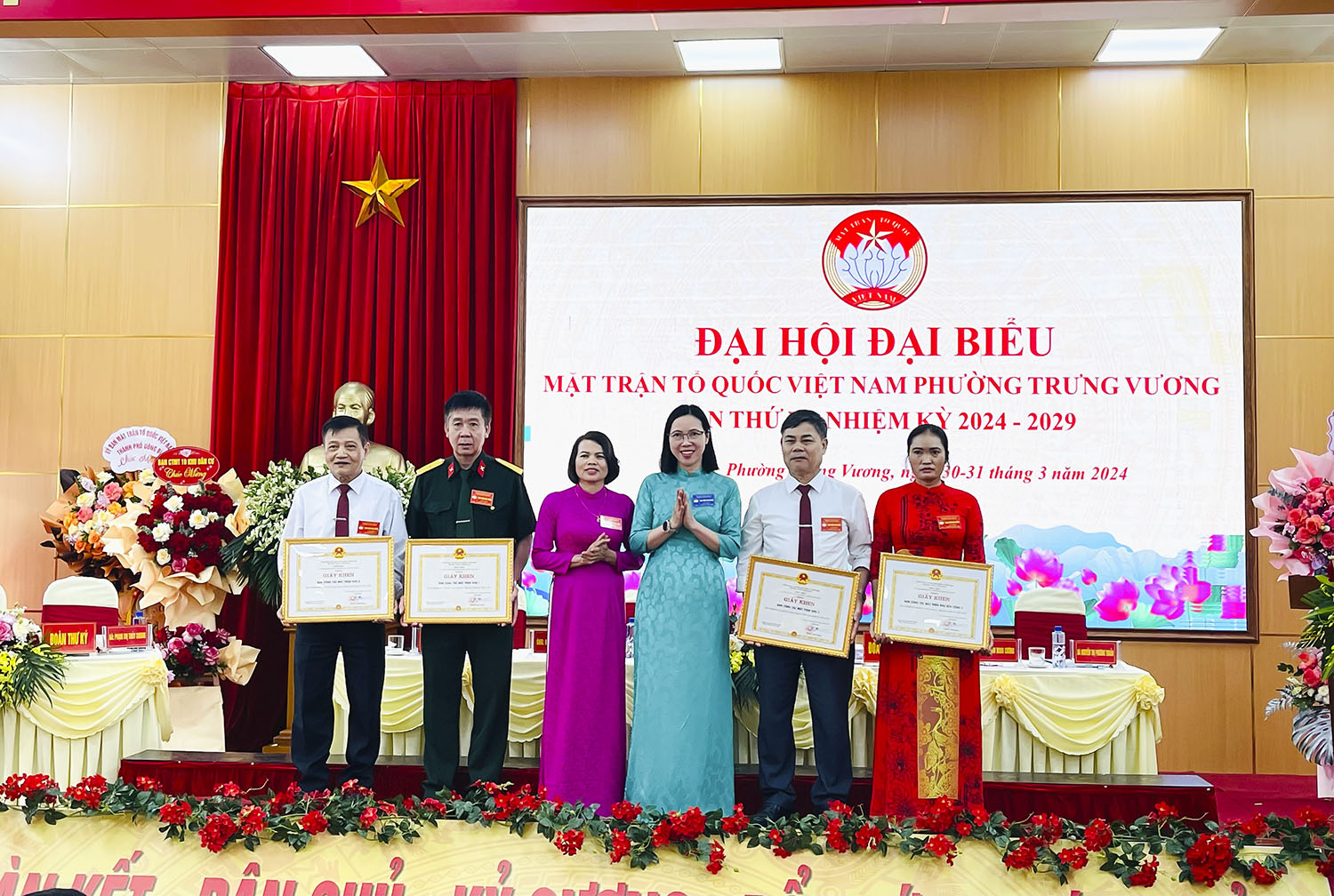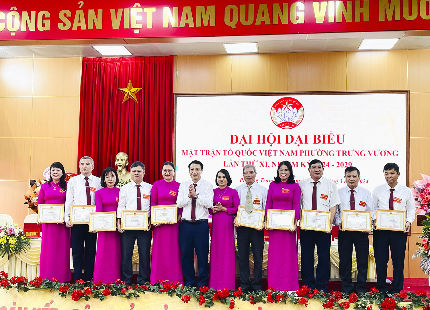 Tại đại hội, UBND phường Trưng Vương đã khen thưởng và biểu dương các tập thể, cá nhân có thành tích xuất sắc trong công tác mặt trận, nhiệm kỳ 2019-2024.
