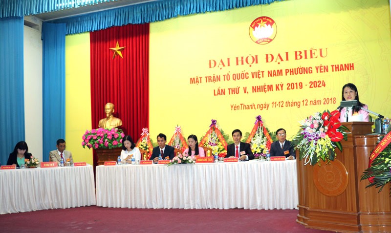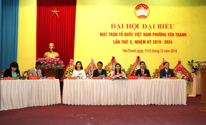 Trong 2 ngày 11-12/12, MTTQ phường Yên Thanh đã tổ chức đại hội đại biểu lần thứ V, nhiệm kỳ 2019-2024. Đồng chí Lê Thị Kim Cúc, Phó Chủ tịch UB MTTQ tỉnh; Đào Ngọc Sơn, UV BTV, Trưởng ban Dân vận Thành ủy; Chủ tịch UB MTTQ thành phố dự chỉ đạo đại hội; Phạm Thị Hải, Bí thư Đảng ủy, Chủ tịch HĐND phường dự chỉ đạo đại hội.