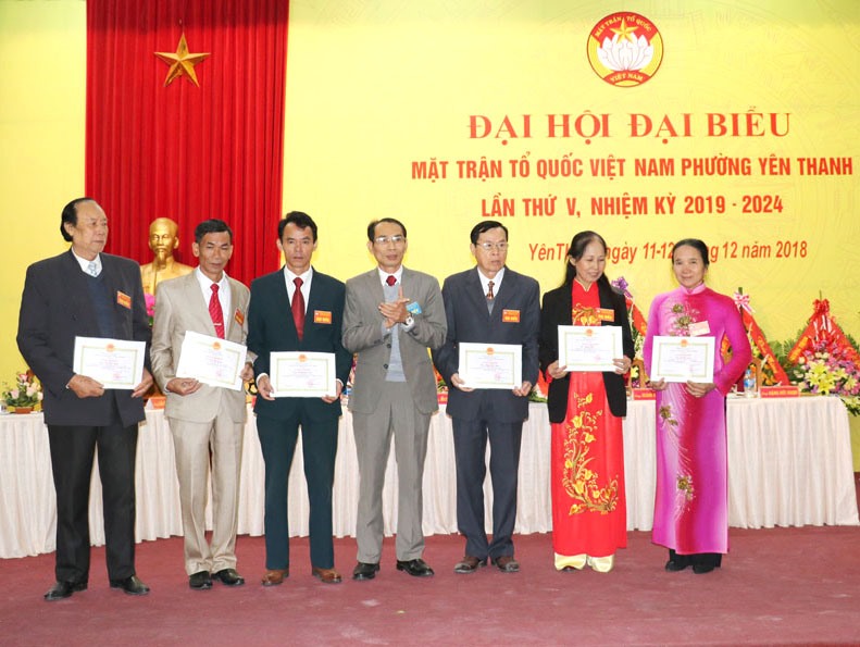Tại đại hội, UBND phường Yên Thanh đã khen thưởng 5 tập thể và 6 cá nhân đã có thành tích xuất sắc trong công tác MTTQ nhiệm kỳ 2013-2018.