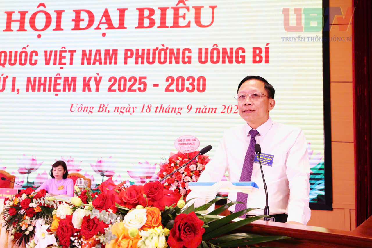Phát biểu chỉ đạo tại Đại hội, đồng chí Nguyễn Phương Thảo, Phó Chủ tịch Ủy ban MTTQ, Bí thư Tỉnh Đoàn ghi nhận và biểu dương những kết quả nổi bật mà MTTQ Việt Nam phường Uông Bí đã đạt được trong nhiệm kỳ qua. Đồng chí nhấn mạnh, sau sáp nhập phường Uông Bí có vị trí địa lý thuận lợi, tiềm năng phát triển thương mại, dịch vụ và du lịch. Những năm qua, đô thị hóa diễn ra nhanh, hạ tầng văn hóa - xã hội được đầu tư, kinh tế chuyển dịch tích cực. Đặc biệt, Bệnh viện Việt Nam - Thụy Điển Uông Bí, Bệnh viện Đa khoa Quốc tế Hà Nội - Quảng Ninh cùng Chùa Ba Vàng, Điểm du lịch sinh thái Lựng Xanh đã trở thành trung tâm y tế, du lịch quan trọng của tỉnh.