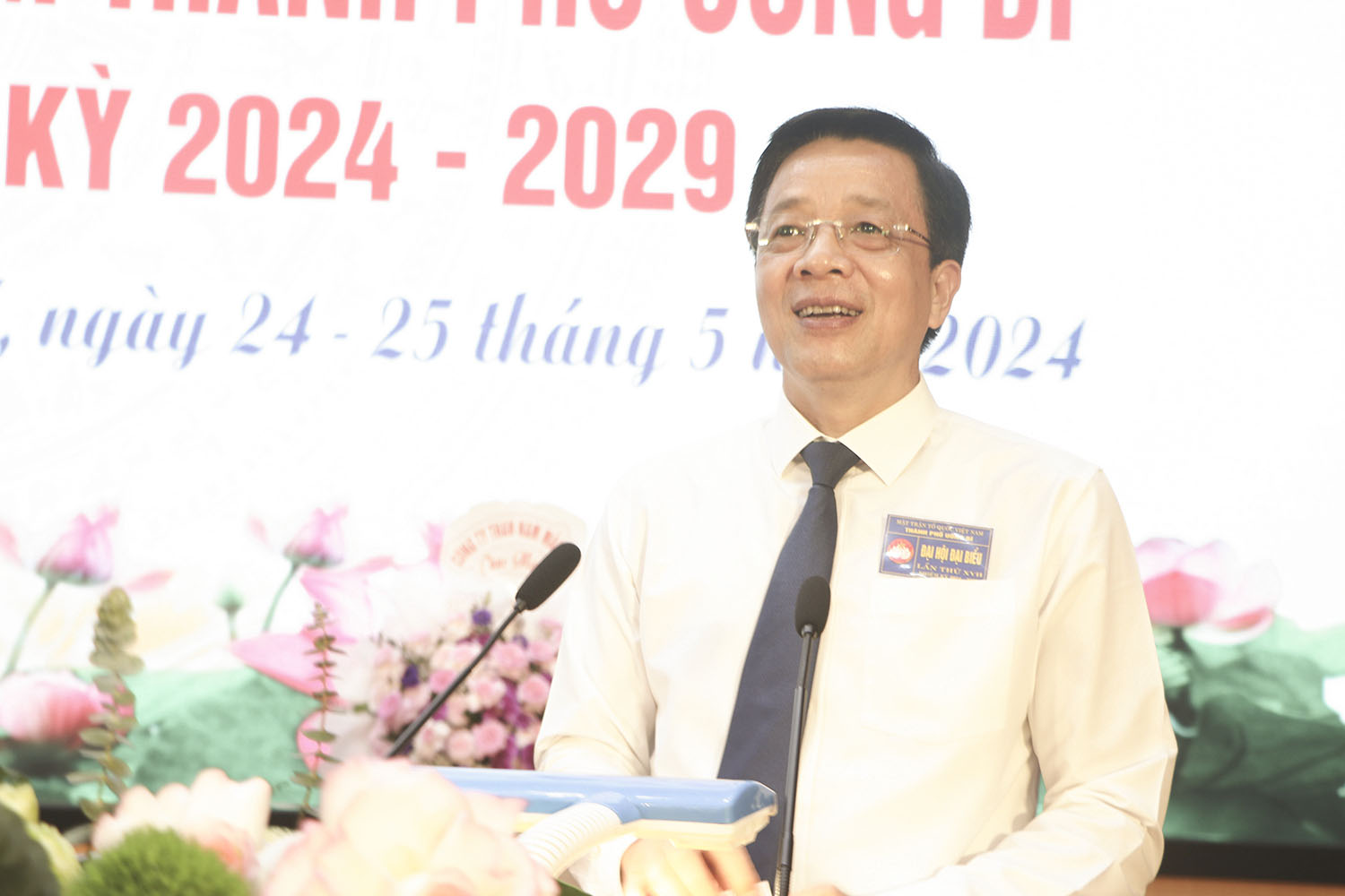 Đồng chí Mai Vũ Tuấn, Tỉnh ủy viên, Bí thư Thành ủy phát biểu tại Đại hội.