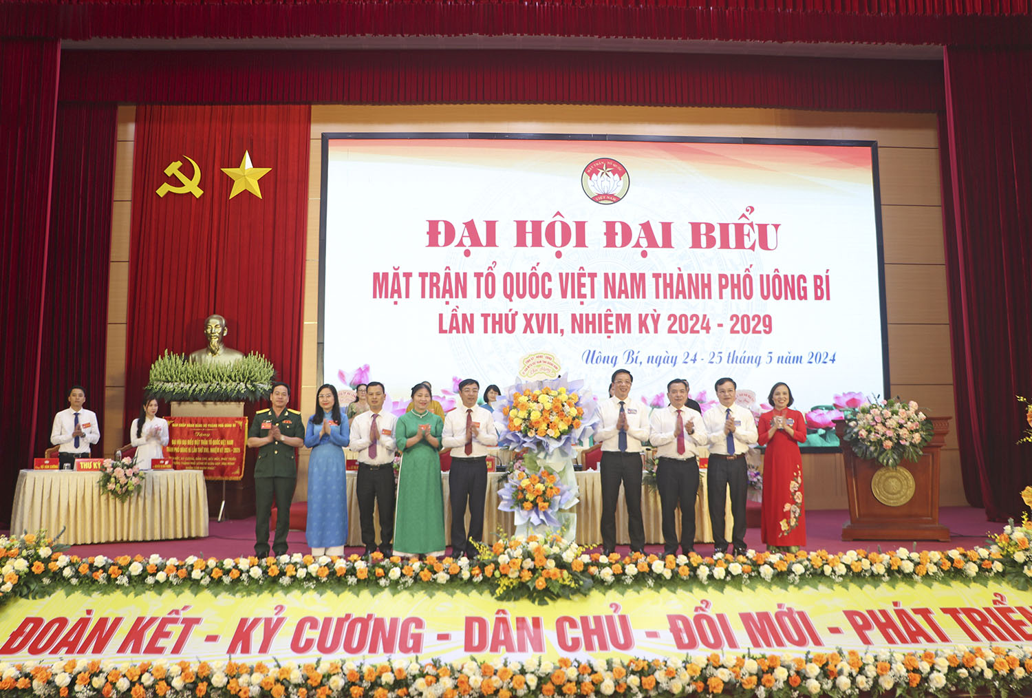 Lãnh đạo Ủy ban MTTQ tỉnh, lãnh đạo thành phố tặng hoa chúc mừng Ủy ban MTTQ Việt Nam thành phố Uông Bí khóa XVII, nhiệm kỳ 2024-2029.