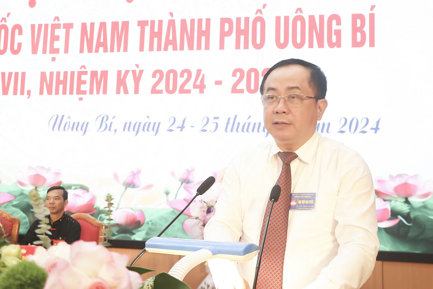 Phát biểu chỉ đạo tại Đại hội, đồng chí Nguyễn Văn Hồi, Ủy viên BTV, Trưởng Ban Dân vận Tỉnh ủy, Chủ tịch Ủy ban MTTQ Việt Nam tỉnh Quảng Ninh đánh giá cao, ghi nhận và biểu dương những kết quả đạt được của Mặt trận Tổ quốc thành phố Uông Bí trong nhiệm kỳ 2019-2024, luôn là đơn vị trong tốp đầu công tác Mặt trận toàn tỉnh.