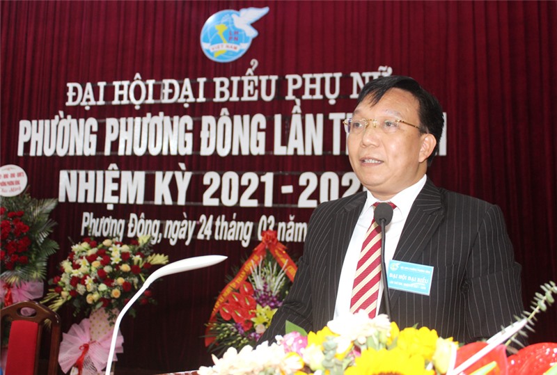 Lãnh đạo phường Phương Đông phát biểu tại Đại hội.