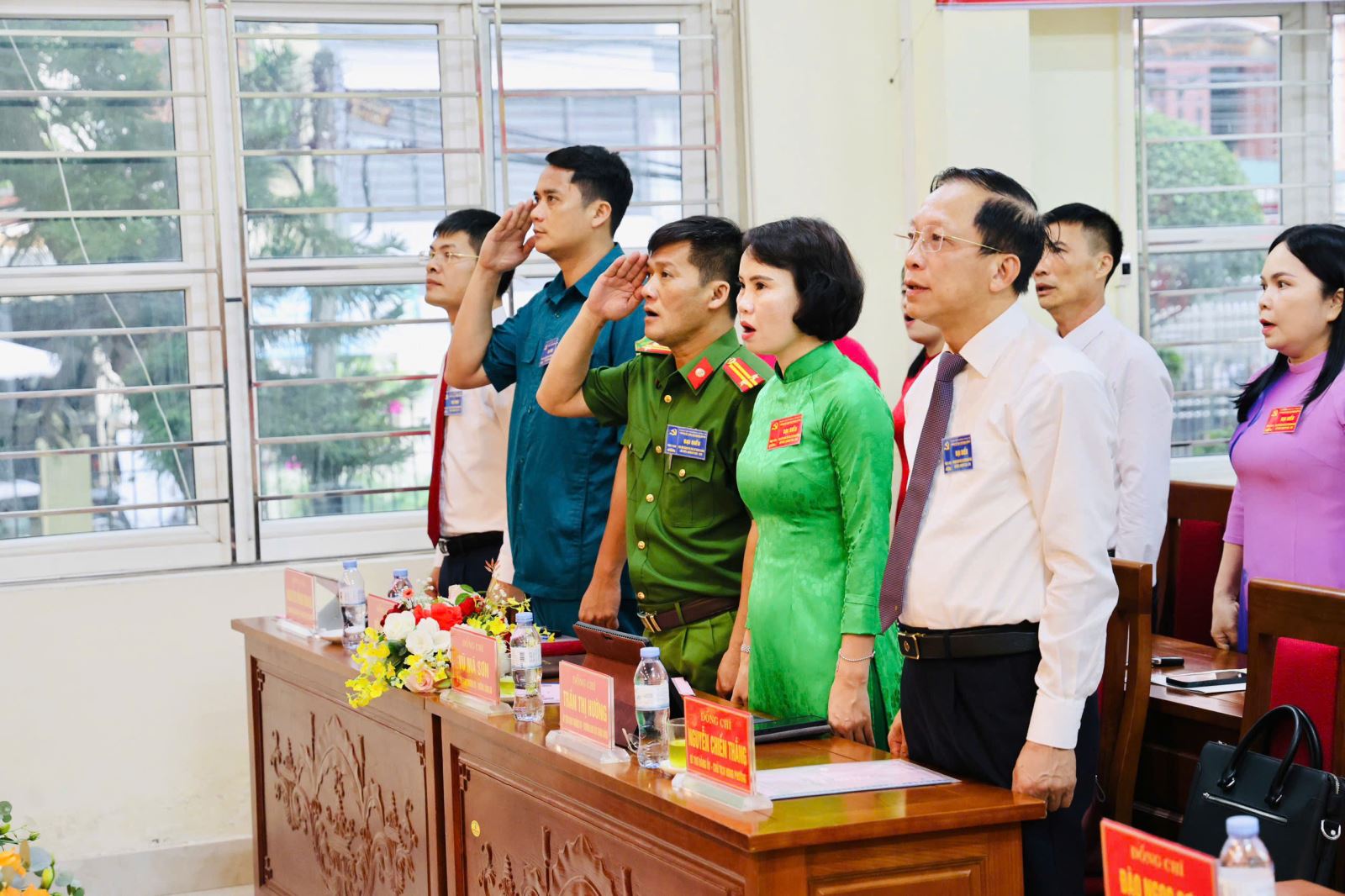 Các đại biểu thực hiện nghi lễ chào cờ.
