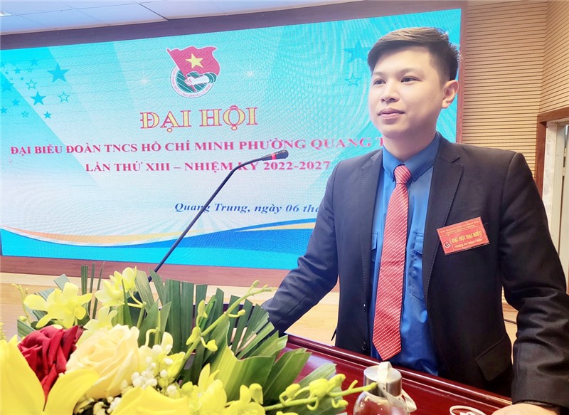 Bí thư Đoàn TNCS HCM phường Quang Trung báo cáo tại Đại hội.