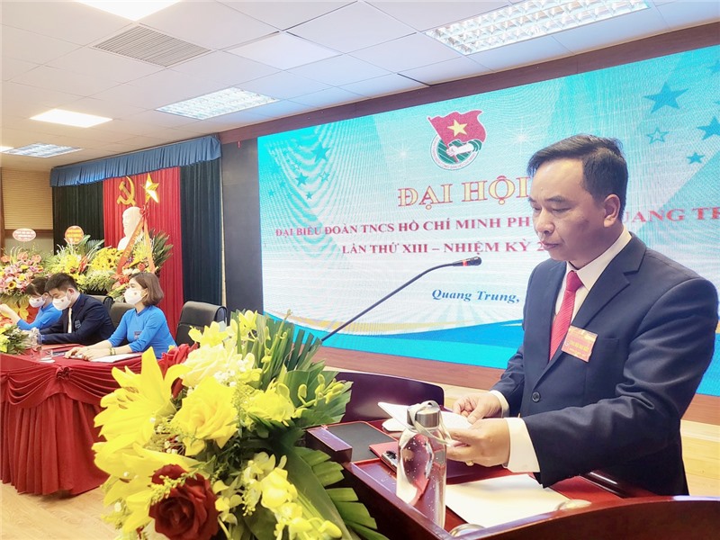 Chiều ngày 6/3, Đoàn TNCS Hồ Chí Minh phường Quang Trung tổ chức Đại hội đại biểu lần thứ XIII, nhiệm kỳ 2022 - 2027. Dự Đại hội có các đồng chí: Lê Hoàng Long, Phó Bí thư Thành Đoàn Uông Bí; lãnh đạo Đảng ủy, UBND, Ủy ban MTTQ Việt Nam phường và 70 đại biểu chính thức.