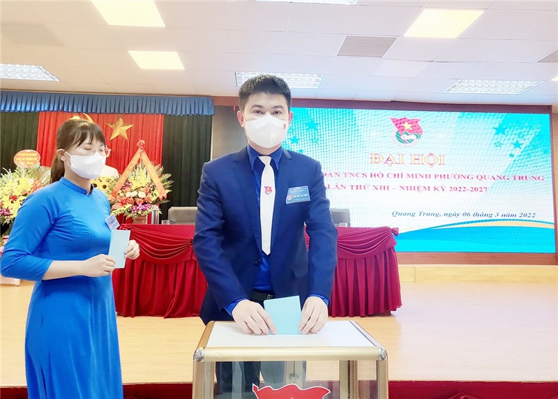 Đại hội đã biểu quyết thông qua 7 chỉ tiêu trọng tâm phấn đấu thực hiện trong nhiệm kỳ 2022 - 2027. Các đại biểu cũng đã bầu 15 ủy viên BCH, bầu đồng chí Đào Anh Trung tiếp tục giữ chức Bí thư Đoàn phường Quang Trung lần thứ XII và 8 đại biểu chính thức, 1 đại biểu dự khuyết tham dự Đại hội đại biểu Đoàn TNCS Hồ Chí Minh thành phố Uông Bí lần thứ XVIII, nhiệm kỳ 2022 - 2027.