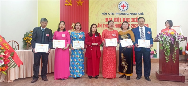 Hội Chữ thập đỏ phường Nam Khê nhiệm kỳ qua đã tập hợp được 750 hội viên và 350 thanh thiếu niên chữ thập đỏ ở các đơn vị nhà trường, tham gia sinh hoạt tại 7 chi hội với 16 tổ hội. Hội đã phát động thực hiện có hiệu quả phong trào "Người người làm việc thiện, nhà nhà làm việc thiện, ngành ngành làm việc thiện" nhằm hưởng ứng lời kêu gọi của Trung ương Hội Chữ thập đỏ Việt Nam. Hàng năm, Hội đã huy động, hỗ trợ tặng từ 90-120 suất quà cho các đối tượng khó khăn nhân dịp Tết; vận động được 55 đơn vị máu trong phong trào hiến máu nhân đạo; phối hợp hỗ trợ xây mới 2 nhà cho hộ nghèo, cận nghèo và tổ chức khám bệnh, cấp phát thuốc miễn phí cho 80 đối tượng người có công tại địa phương...
