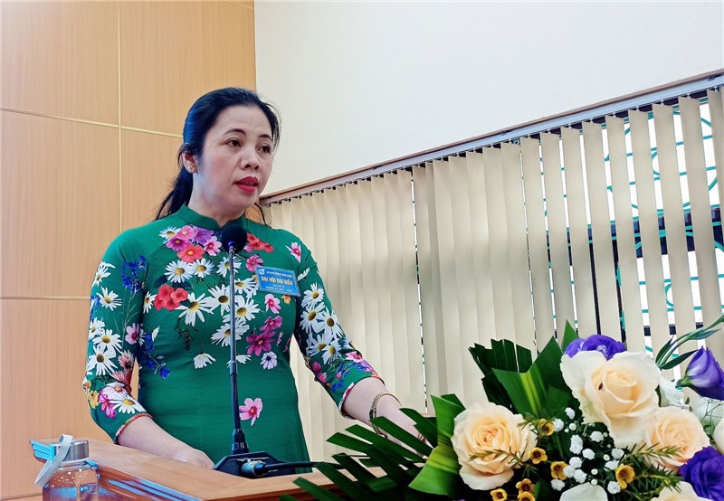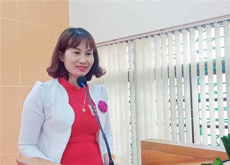 Chủ tịch Hội LHPN phường Trưng Vương khoá XI, nhiệm kỳ 2016-2021 báo cáo tại Đại hội.
