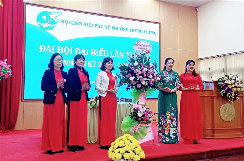 Hội LHPN thành phố và phường Trưng Vương tặng hoa chúc mừng Đại hội.