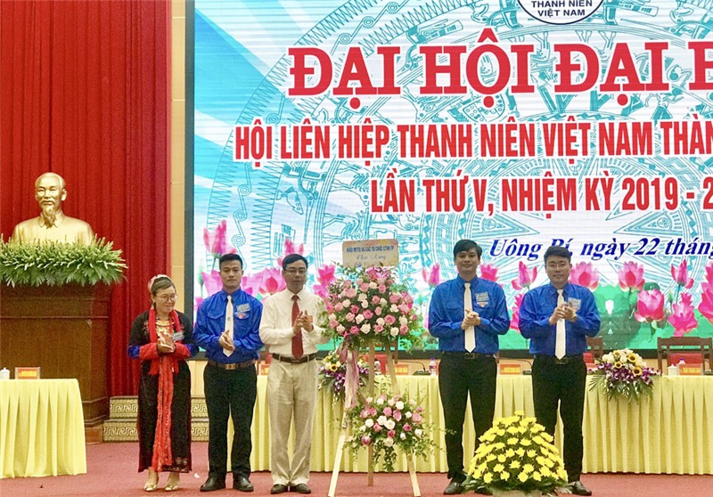 Lãnh đạo Hội LHTN tỉnh Quảng Ninh, lãnh đạo Thành ủy, MTTQ thành phố tặng hoa chúc mừng Đại hội.