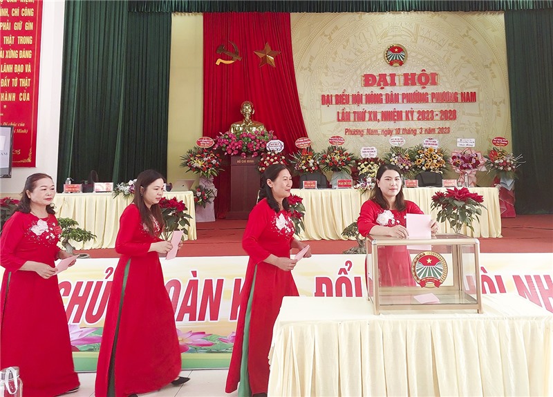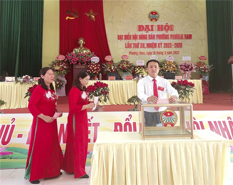 Đại hội đã bầu Ban Chấp hành khóa mới với 19 đồng chí và bầu đoàn đại biểu dự Đại hội đại biểu Hội Nông dân TP Uông Bí, nhiệm kỳ 2023-2028. Đồng chí Bùi Văn Trà tiếp tục được Đại hội tín nhiệm bầu giữ chức Chủ tịch Hội Nông dân phường Phương Nam lần thứ XII, nhiệm kỳ 2023-2028.