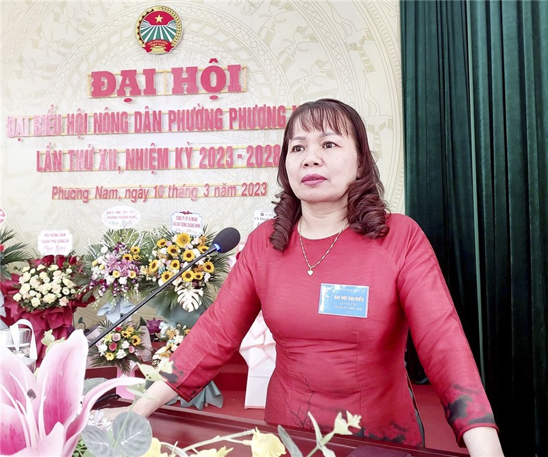 Đồng chí Chủ tịch Hội nông dân phường Phương Nam lần thứ XI báo cáo tại Đại hội.