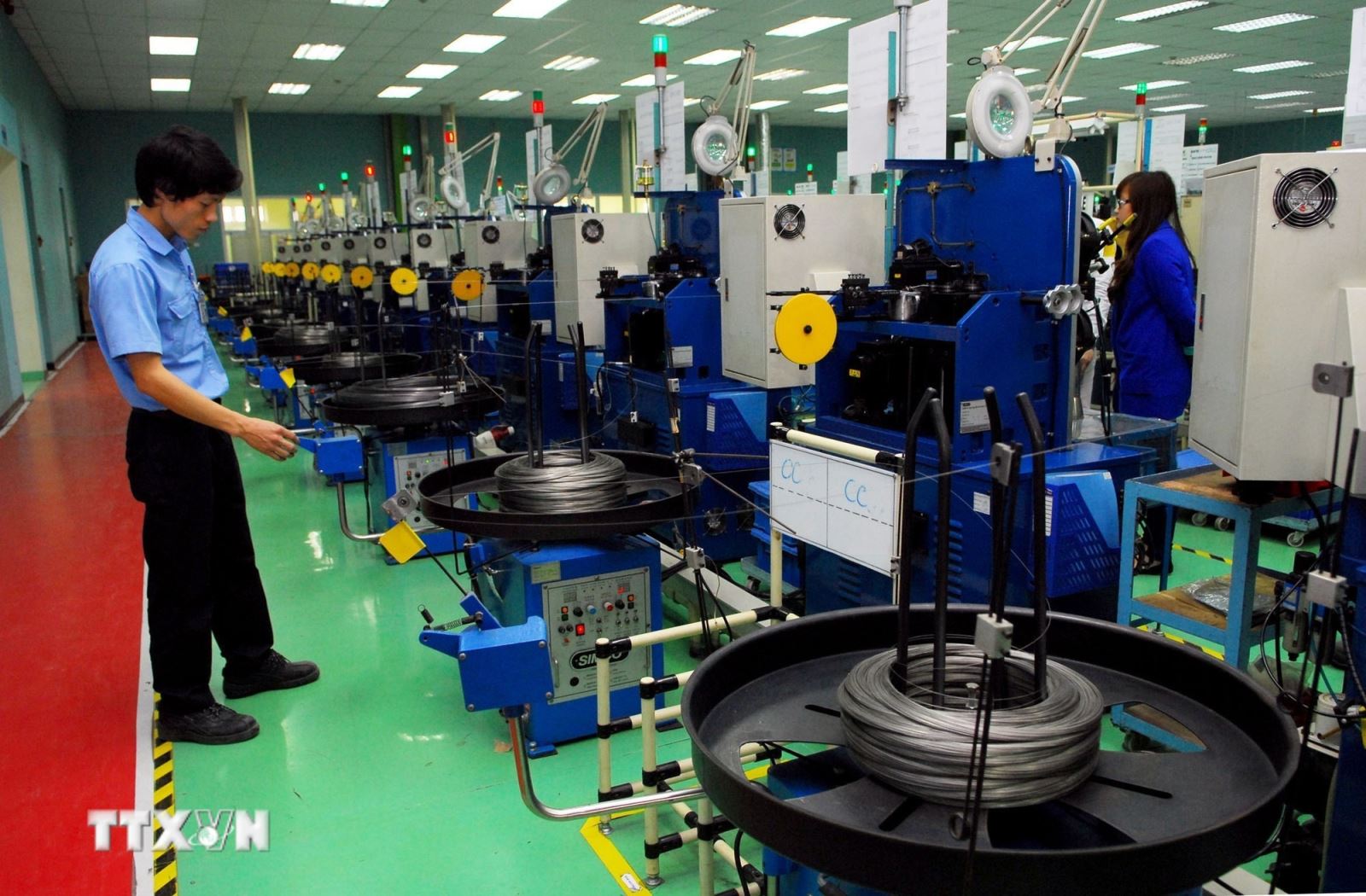 Một dây chuyền sản xuất các loại lò xo (cuốn, dập), linh kiện cơ khí…chất lượng cao, cung cấp cho các nhà máy. (Ảnh: Danh Lam/TTXVN)