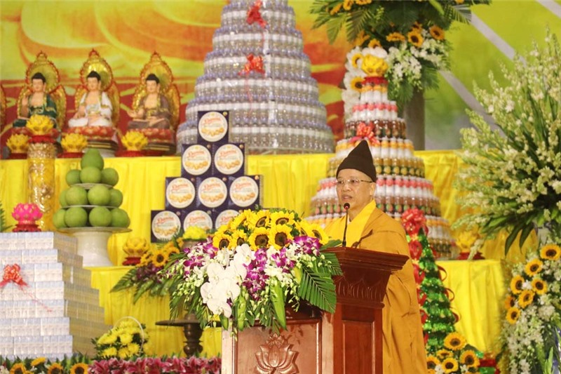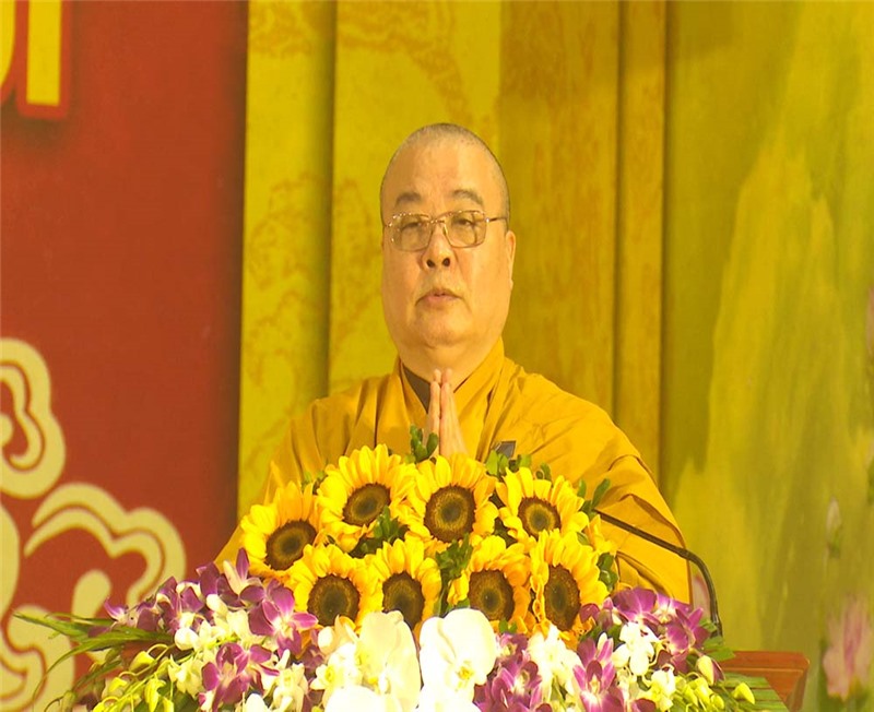 Hoà thượng Thích Thanh Nhiễu, Phó Chủ tịch Thường trực Hội đồng Trị sự (HĐTS) GHPG Việt Nam phát biểu tại buổi lễ.