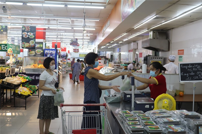 Tại các siêu thị, TTTM, việc thực hiện các quy định phòng, chống dịch cũng đang được thực hiện chặt chẽ. Các đơn vị đã quán triệt cán bộ, nhân viên thực hiện nghiêm quy định phòng dịch Covid-19, bố trí nước sát khuẩn, nhân viên túc trực tại các lối ra vào nhắc nhở người dân đeo khẩu trang và thực hiện nghiêm việc quét mã QR khi vào siêu thị.