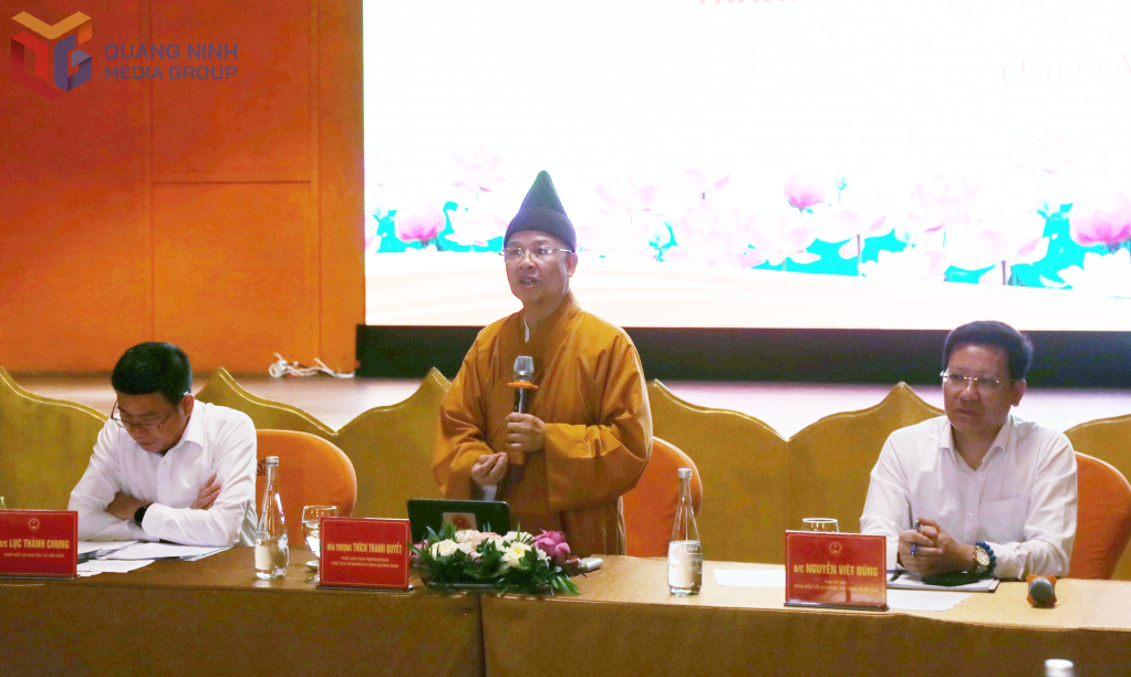 Hòa thượng Thích Thanh Quyết, Phó Chủ tịch Hội đồng Trị sự Trung ương Giáo hội Phật giáo Việt Nam, Trưởng Ban Trị sự Giáo hội Phật giáo Việt Nam tỉnh Quảng Ninh thông tin tại họp báo.