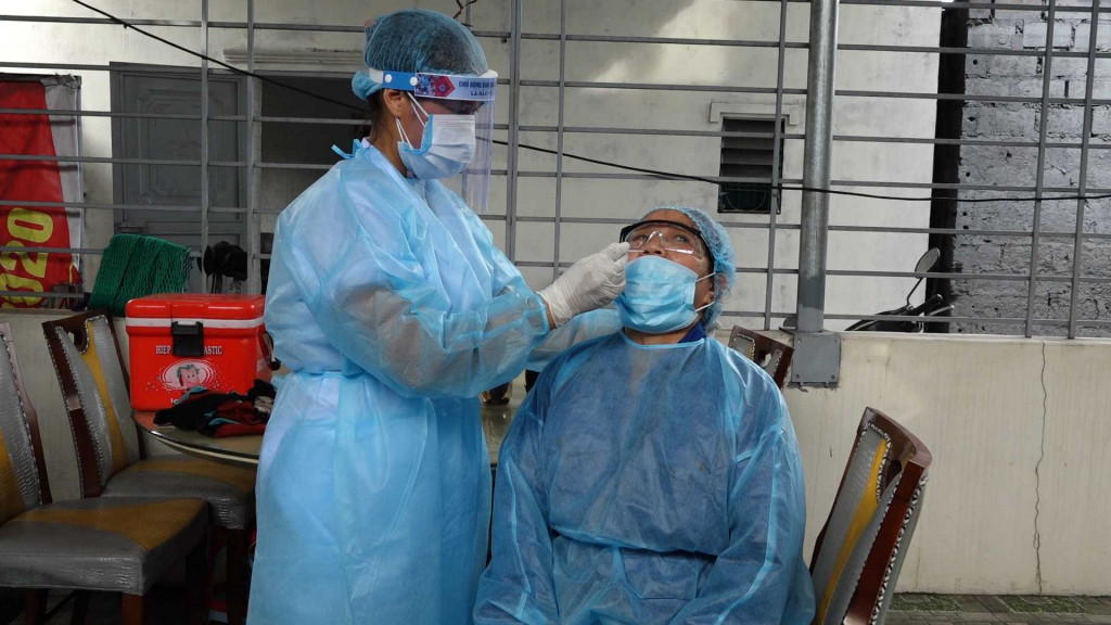 Diễn tập lấy mẫu xét nghiệm Covid-19 cho các F1 tại phường Cẩm Thịnh, TP Cẩm Phả.