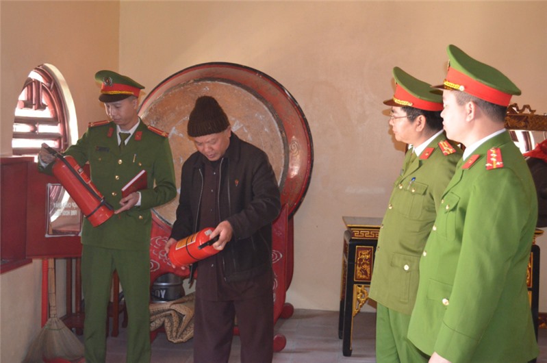 Công tác PCCC tại các đền, chùa được Công an TX Đông Triều đặc biệt chú trọng. Ảnh: Nguyễn Khánh (Công an tỉnh)