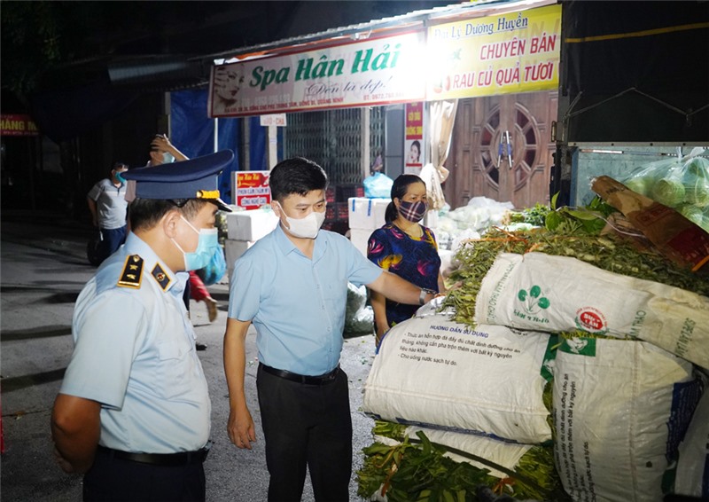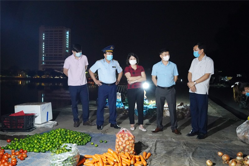 Đồng chí Nguyễn Đức Tiệp, Phó Chủ tịch UBND thành phố kiểm tra tại chợ đầu mối rau củ quả.