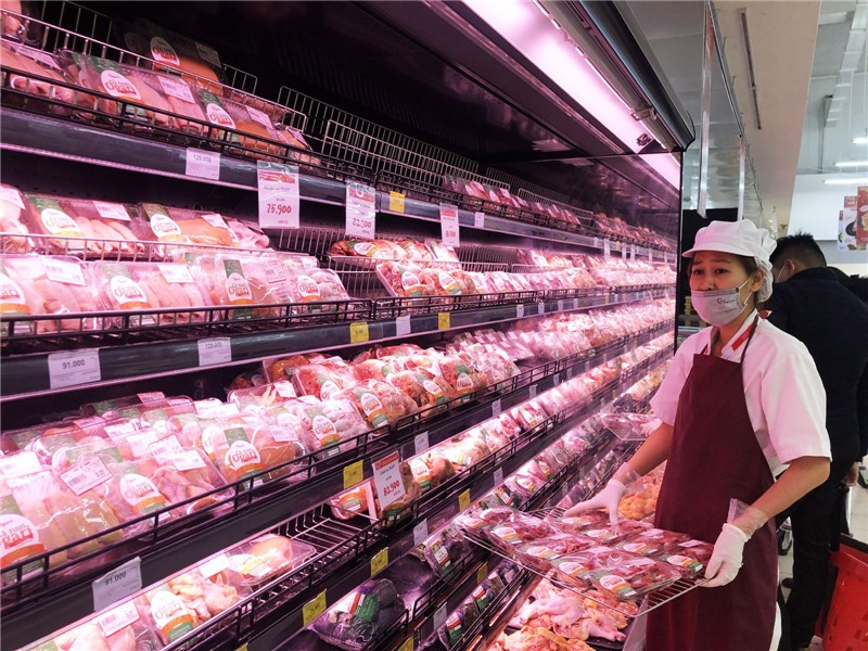 Nhân viên Siêu thị GO! Hạ Long sắp xếp thực phẩm lên kệ phục vụ nhu cầu mua bán của người dân.