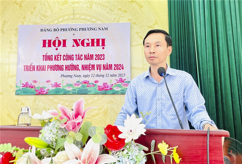 Phát biểu chỉ đạo tại hội nghị, đồng chí Hoàng Quốc Trung, Uỷ viên BTV, Trưởng Ban Tuyên giáo Thành ủy, Giám đốc Trung tâm Chính trị thành phố đã ghi nhận, biểu dương những kết quả tích cực trên các mặt công tác của Đảng bộ phường Phương Nam trong năm 2023. Nhấn mạnh vào phương hướng, nhiệm vụ trọng tâm năm 2024, đồng chí đề nghị Đảng bộ cần tiếp tục đẩy mạnh xây dựng, chỉnh đốn Đảng và hệ thống chính trị; tiếp tục đổi mới phương thức, nâng cao năng lực lãnh đạo của Đảng, hiệu lực, hiệu quả của chính quyền, nâng cao chất lượng, hiệu quả hoạt động của Mặt trận Tổ quốc và các tổ chức chính trị - xã hội. Đồng thời thực hiện cơ cấu lại kinh tế gắn với nâng cao chất lượng tăng trưởng kinh tế, triển khai hiệu quả quy hoạch, thúc đẩy đầu tư; thực hiện ba đột phá chiến lược; chú trọng phát triển văn hóa - xã hội; bảo đảm quốc phòng, an ninh, trật tự an toàn xã hội.