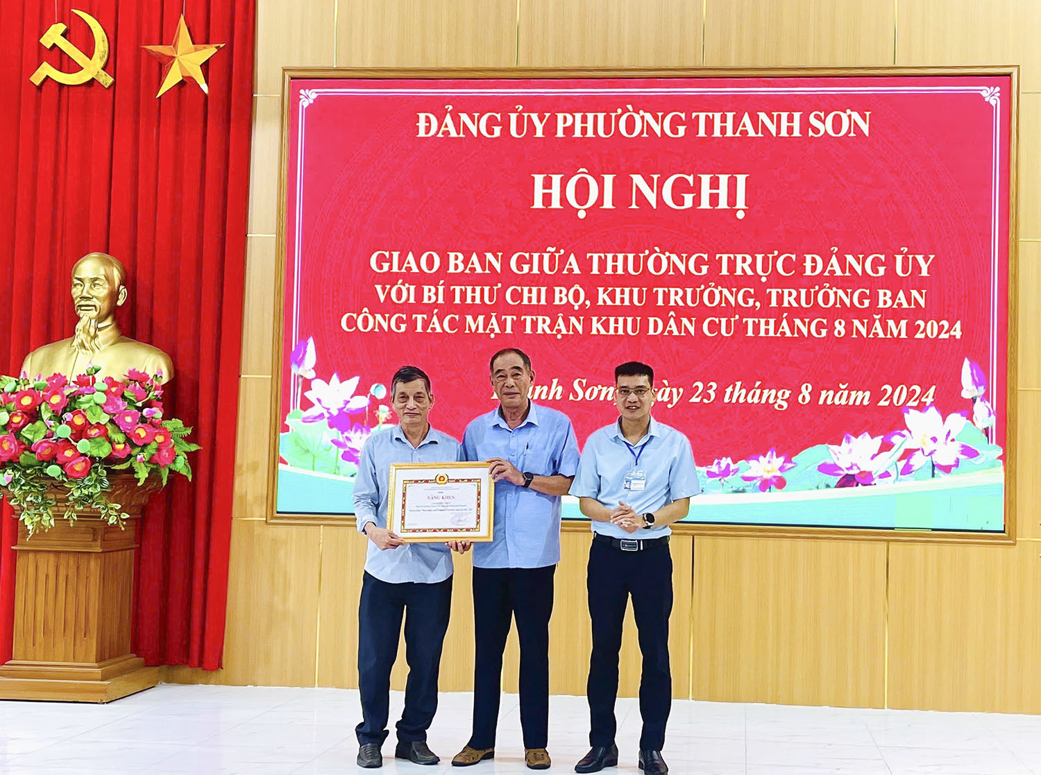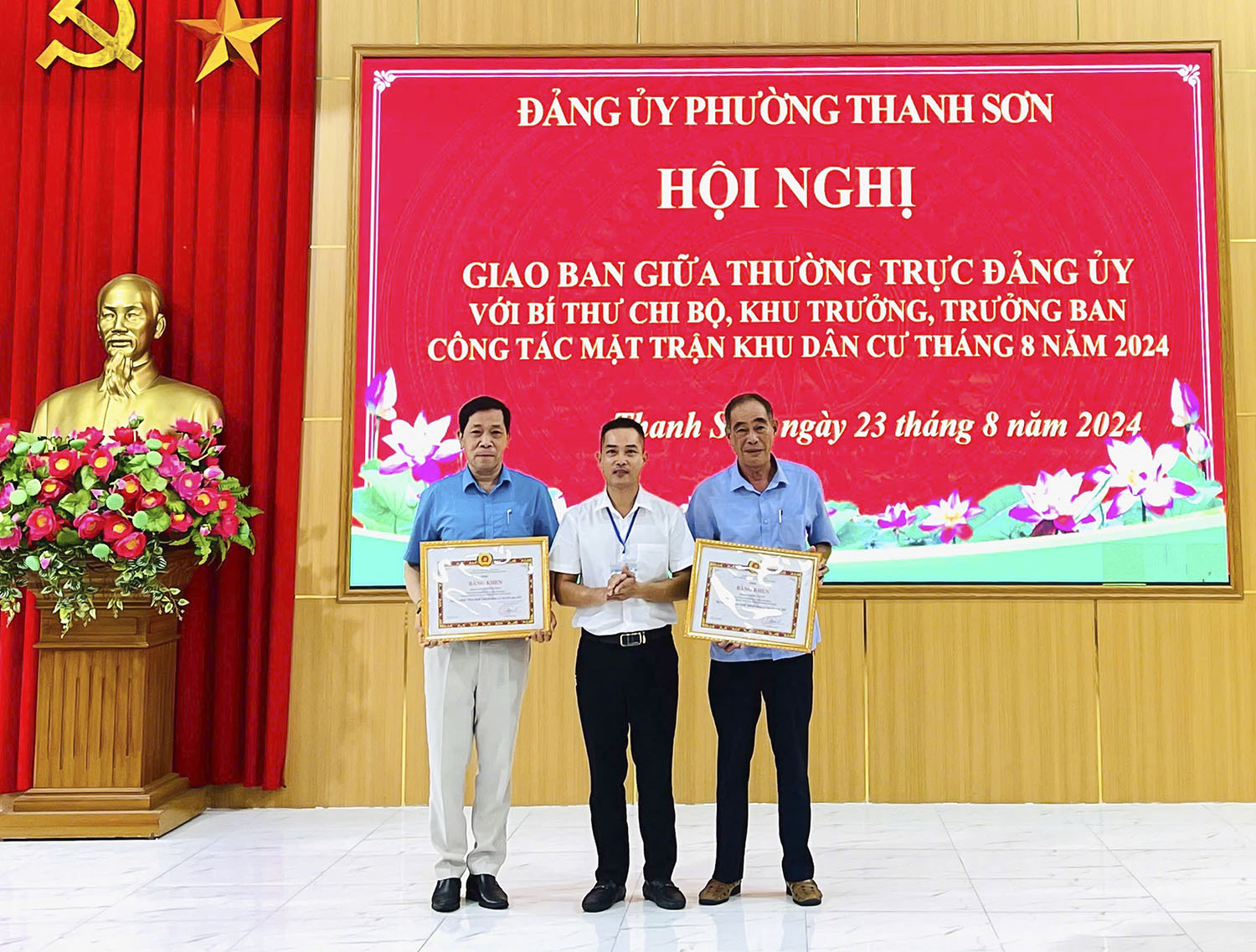 Ngày 23/08, Đảng bộ phường Thanh Sơn tổ chức Hội nghị giao ban giữa Thường trực Đảng ủy với Bí thư chi bộ, Khu trưởng, Trưởng Ban công tác mặt trận khu dân cư tháng 8.