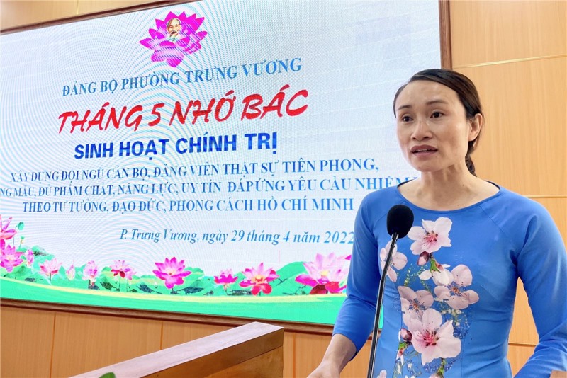 Đảng bộ phường Trưng Vương: Sinh hoạt chính trị về xây dựng, chỉnh đốn Đảng và hệ thống chính trị gắn với chuyên đề học tập, làm theo tư tưởng, đạo đức, phong cách Hồ Chí Minh năm 2022