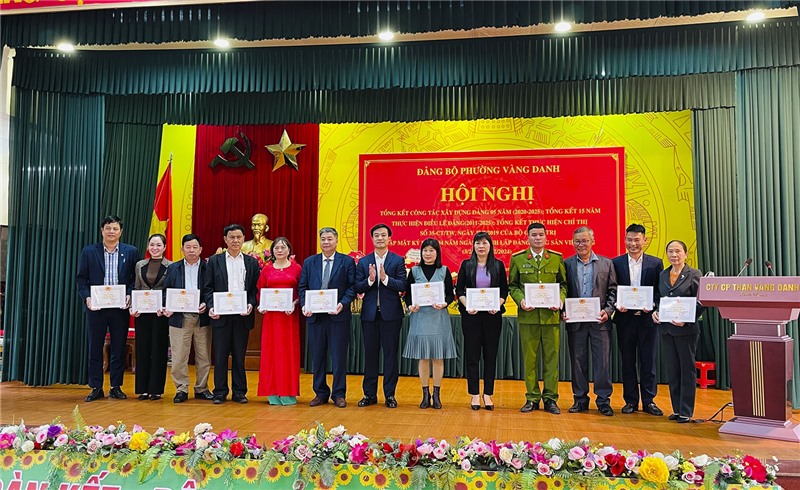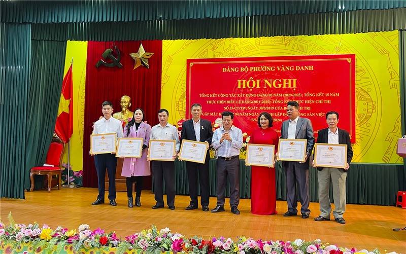 Tại hội nghị, Đảng bộ phường Vàng Danh đã khen thưởng 7 tập thể và 10 cá nhân đã có thành tích xuất sắc trong 15 năm thi hành điều lệ Đảng (2011 - 2025); khen thưởng 5 tập thể và 7 cá nhân đã có thành tích xuất sắc trong 5 năm thực hiện công tác xây dựng Đảng; khen thưởng 4 tập thể và 7 cá nhân đã có thành tích xuất sắc trong việc thực hiện Chỉ thị số 35-CT/TW ngày 30/5/2019 của Bộ chính trị.