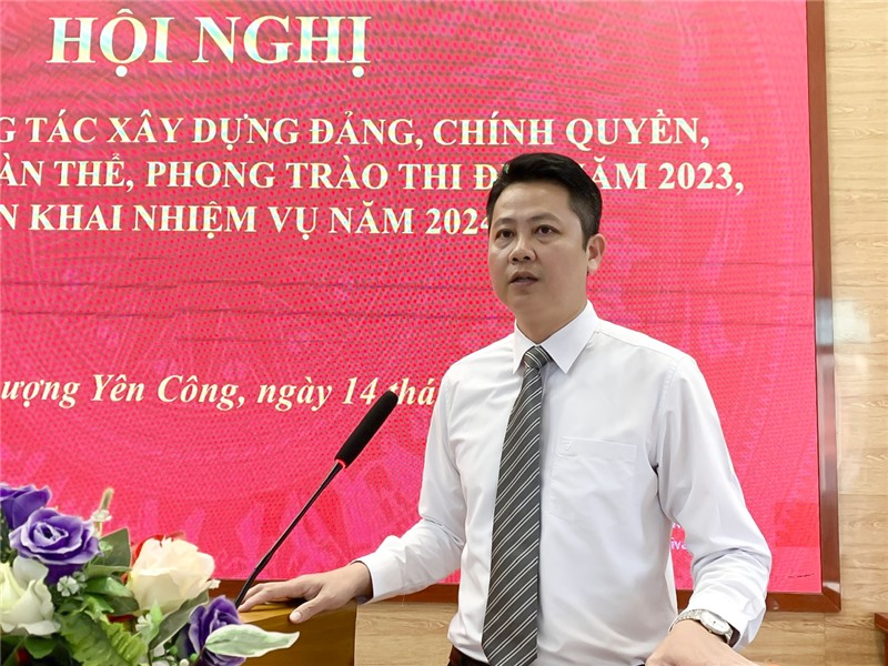 Chiều 14/12, Đảng bộ xã Thượng Yên Công đã tổ chức tổng kết công tác xây dựng Đảng, chính quyền, MTTQ và các đoàn thể, phong trào thi đua năm 2023; triển khai phương hướng nhiệm vụ năm 2024. Đồng chí Mạc Xuân Tú - Uỷ viên BTV, Chánh Văn phòng Thành uỷ dự hội nghị.