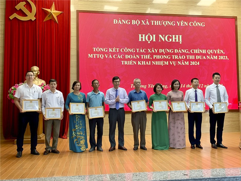 Nhân dịp này, Đảng uỷ, UBND xã Thượng Yên Công đã khen thưởng các chi bộ, đảng viên có thành tích xuất sắc trong các mặt công tác năm 2023.