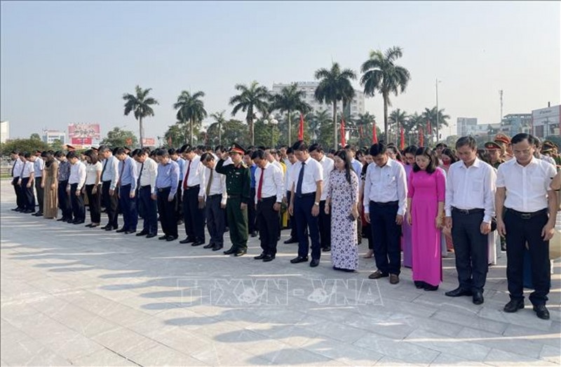 Đại diện lãnh đạo tỉnh Quảng Trị cùng đông đảo cán bộ, công nhân, viên chức, người dân mặc niệm tưởng nhớ cố Tổng Bí thư Lê Duẩn.