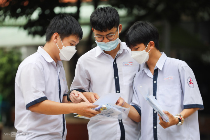 Thí sinh thi tốt nghiệp tại hội đồng thi THCS Trần Văn Ơn, quận 1, TP HCM ngày 7/7/2022. Ảnh: Quỳnh Trần
