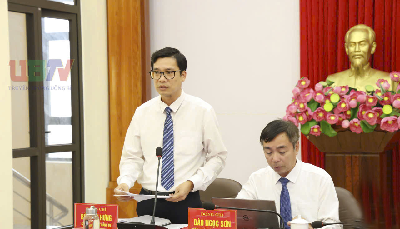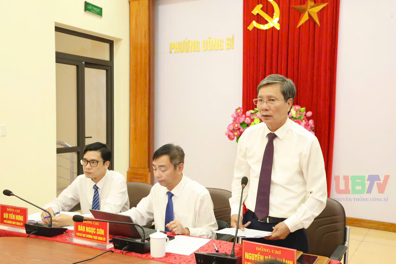 Đồng chí Đào Ngọc Sơn, Phó Bí thư Thường trực Đảng ủy phường, Bí thư Đảng ủy các cơ quan Đảng phường Uông Bí phát biểu tại hội nghị.
