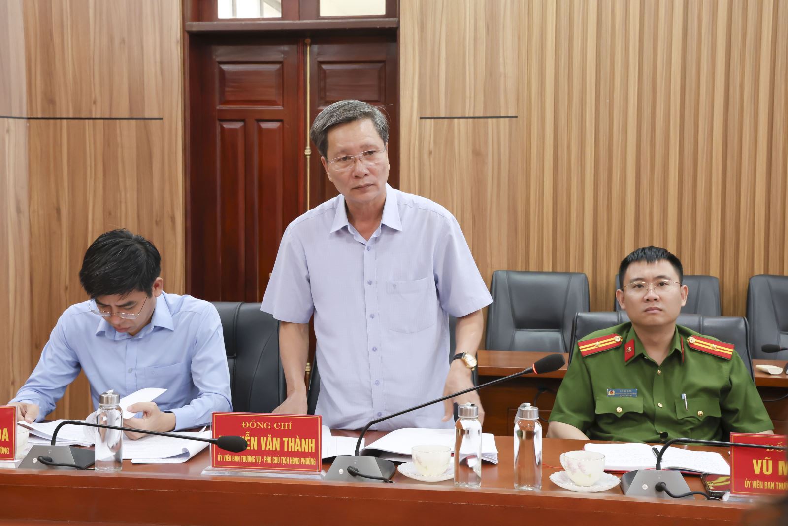 Đồng chí Nguyễn Chiến Thắng, Bí thư Đảng ủy, Chủ tịch HĐND phường phát biểu tại hội nghị Ban thường vụ Đảng ủy (bước 1).