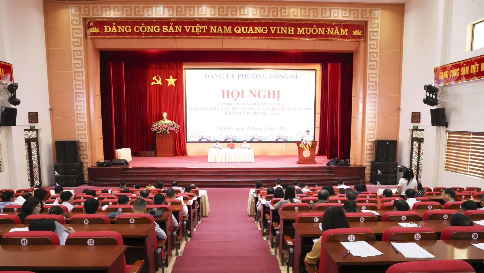 Chiều ngày 18/3, Đảng ủy phường Uông Bí tổ chức các Hội nghị thực hiện quy trình quy hoạch cấp ủy, Ban thường vụ và các chức danh lãnh đạo phường diện Ban Thường vụ Đảng ủy phường quản lý nhiệm kỳ 2025-2030 (2026-2031). Đồng chí Nguyễn Chiến Thắng, Bí thư Đảng ủy, Chủ tịch HĐND phường Uông Bí chủ trì hội nghị.