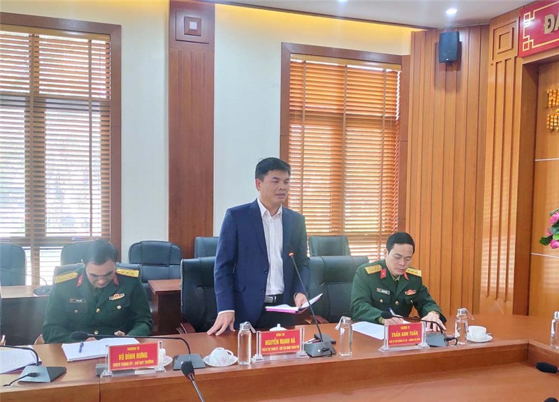 Thượng tá Vũ Đình Hưng, Chỉ huy trưởng BCH Quân sự thành phố phát biểu tại hội nghị.