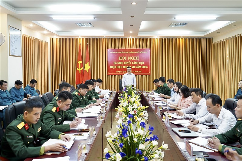 Hội nghị đã thảo luận, đề ra Nghị quyết lãnh đạo thực hiện nhiệm vụ năm 2024 với một số chỉ tiêu, nhiệm vụ chủ yếu như: tiếp tục lãnh đạo duy trì nghiêm chế độ trực sẵn sàng chiến đấu, bảo vệ an toàn các ngày Lễ, tết, các ngày kỷ niệm trọng đại của đất nước, địa phương với 100% quân số; tập trung lãnh đạo hoàn thiện nhiệm vụ chính trị trong năm; tiếp tục triển khai xây dựng đơn vị vững mạnh toàn diện “Mẫu mực, tiêu biểu”, gắn với chủ đề công tác của tỉnh, thành phố và phong trào thi đua quyết thắng của LLVT thành phố năm 2024; tăng cường công tác quản lý, giáo dục, rèn luyện đội ngũ cán bộ, đảng viên; bảo vệ chính trị nội bộ, tạo sự chuyển biến vững chắc; giữ vững Đảng bộ trong sạch vững mạnh, đơn vị vững mạnh toàn diện. Đồng thời, tiếp tục chỉ đạo tổ chức huấn luyện và bồi dưỡng kiến thức quốc phòng - an ninh cho các đối tượng theo quy định; hoàn thành 100% chương trình huấn luyện chiến đấu, giáo dục chính trị cho các đối tượng; tham mưu cho thành phố triển khai có hiệu quả các bước tuyển quân bảo đảm 100% chỉ tiêu được giao và tổ chức Lễ giao nhận quân năm 2024 đảm bảo trang trọng, đúng kế hoạch và phối hợp chặt chẽ với các Sở, ban ngành liên quan để tiếp tục triển khai xây dựng trụ sở Ban chỉ huy quân sự thành phố, ban chỉ huy quân sự các xã, phường.