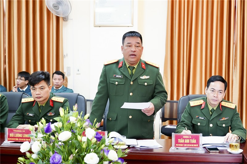 Đồng chí thượng tá Nguyễn Tiến Vinh - Chỉ huy trưởng Ban chỉ huy quân sự thành phố phát biểu tại hội nghị.